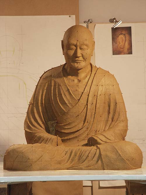 5. 像の開口部を閉じる。通常は変形止めに心木を入れるが、和上像にはない。
