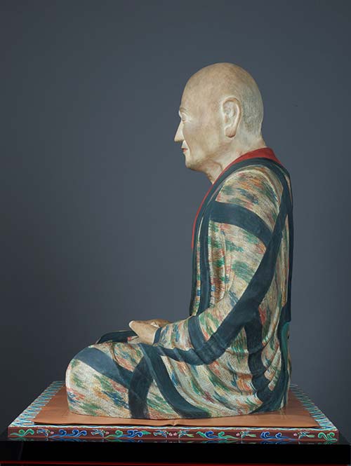 開山堂は元禄時代に徳川家歴代の御霊殿として建立され、その後明治14年(1881)に鑑真大和上の尊像を安置するため現在の位置へ移築されました。国宝の和上像が御影堂へ移されたのち、覚盛上人・聖武天皇・徳川家康の坐像を安置した本願殿として参拝されていましたが、御堂の老朽化をうけて改修工事を行い、鑑真大和上円寂から1250年になる平成25年(2013)、大和上のお姿を写した「御身代わり像(おみがわりぞう)」がつくられ、再び開山堂として落慶致しました。
